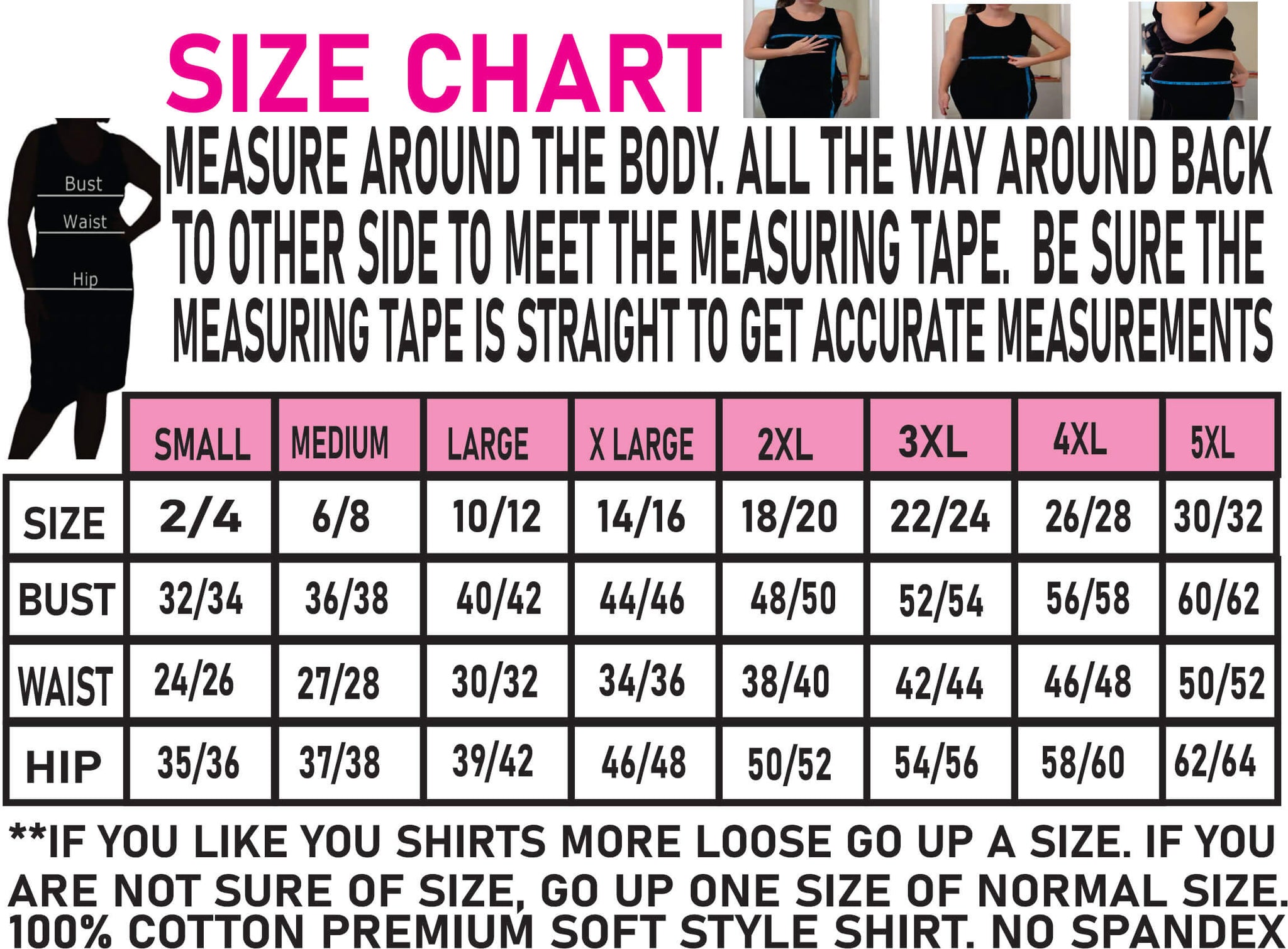 The Shirt is a ladies true to size ladies fit shirt. It is not a fitted tee. It is not a junior fit tee. It is tapered in the waistline a little for a feminine look. If you like your shirt more loose than fit go up a size. If you are use to unisex style shirts go up a size. If you are not sure of your size you may want to go up a size.